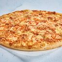 Pizza med tomatsaus og ost. Velg mellom skinke, pepperoni, bacon, kjøttdeig eller kylling.