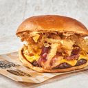 Dobbel ost, tørrsaltet bacon fra Idsøe, chili-mayo og tempurafritert løk. Penslet med smør. Serveres med valgfri drikke, og kan velge mellom Hekkans fries med snadder aioli, sørpotet fries eller classic fries.