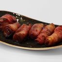 Serveres med laks, edamamebønner, ponzu, mango, agurk og wonton chips.