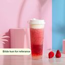 The strawberry fruit is widely appreciated for its characteristic aroma, bright red color, juicy texture, and sweetness. The drinks are light and refreshing but not overly heavy. The strawberry tastes dominate the flavor of this strawberry cream boba tea, which also has a hint of milk creaminess and a light tea flavor. Although it is not overpowering in this recipe, the tea helps to counteract the strawberry syrup's sweetness. Ingredients (strawberry fruit syrup, green tea and oat milk). Calories 210-270. Vegan drink. Choose size.