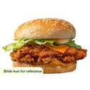 Burger med tenders, chicken special sauce og cheddar.