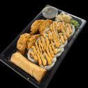 8 stk. kyllingmaki, 4 stk. dumpling og 1 stk. vårrull.