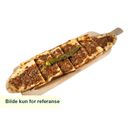 Mikset kjøttdeig av lam grillet på spyd, serveres med bulgur, tzatsiki og grønnsaker.