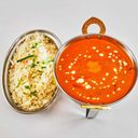 Benfri grillet kylling, blandet med løk, tomat, smør, fløte og cashewnøtter i rømmesaus. Serveres med ris. CASHEWNØTTER KAN IKKE FJERNES.