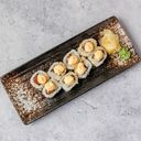 8 biter. Serveres med fritert scampi og avokado.