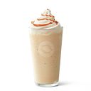 Nydelig kald latte med smak av salt karamell. Serveres med isbiter.