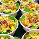 Ris, salat, grønnsaker bønner, chillimajones teriyaki saus