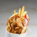 Golden fries til 50kr var bare helt vanlig fries, manglet en frie eske. Pita brødet var slafsete og vått. God mat men likvel ikke noe jeg hadde bestilt igjen