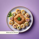 Entrecoteruller fylt med purreløk og hvitløk. Toppet med teriyaki-saus og servert med stekte grønnsaker.