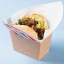 Mørt biffkjøtt med krydder. Servert med grønnsaker i pitabrød. Velg størrelse.