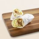 Nystekt Yummy rullebrød med salat, tomat, løk, agurk, mais og valgfri saus med kyllingkjøtt.