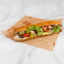 Marinert og ovnsstekt kylling i vietnamesisk baguette med syltede grønnsaker, frisk koriander, agurk, majones og sprøtt brød. (hvete, egg, soya)