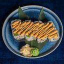 Sesame seeds, fried shrimp, avocado, flamed spicy salmon tartare, teriyaki sauce, and tobiko.