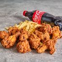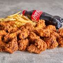 Fritert kylling og hotwings med pommes frites og valgfri 0,5l drikke.