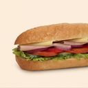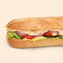 Halv sub fylt med ost, skinke, salat, tomat, agurk, paprika, løk, smør og majones.