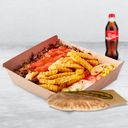 En perfekt combo for å løfte dagen din. Serveres med liten shawarma i pita eller rull, 1 drikke og 1 cheesy fries.