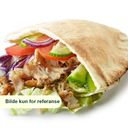 Strimlet kylling i pitabrød med fersk salat og saus.
