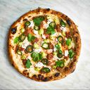 Serving sized pizza with San Marzano tomato, casbar cheesemix, seasonal vegetables, haukeli chevre and Salsa Mach. (Can be made vegan)