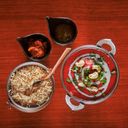 Ris kokt med benfritt lammekjøtt, cashewnøtter og rosiner. Rich of spices Biryani is always "Medium". It means little spicy.