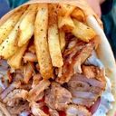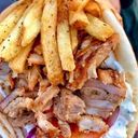 Pitabrød fylt med valgt kjøtt, tomat, løk og tzatziki. Serveres med fries.