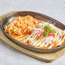 Hvetetortilla med kryddermarinert kylling med ananas, kremet chipotlesaus gratinert ost. Toppes med rømme og rødløk. Serveres med meksikansk ris. Prisen avhenger av hvilket størrelse man velger.