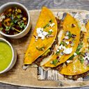 Hvetetortilla med smeltet ost, grillet paprika og rødløk. Serveres med tortillachips og to valgfri dipper. Prisen avhenger av hvilket kjøtt man velger.
