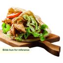 Kebab med salat, tomat, mais, løk, ananas, gyroskjøtt og kebabsaus.