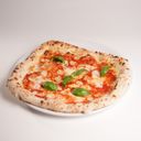 Pizza med San Marzano tomatsaus, mozzarella Fior di Latte, basilikum og olivenolje.