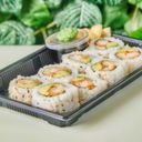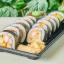 Futo maki med fritert scampi, avokado, salat og chilimayo. Velg mellom 6 eller 12 biter.