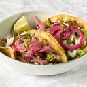 2 stk tacos med pulled beef marinert i mexa spice, bbq saus, salat, syltet rødløk og mangosalsa.