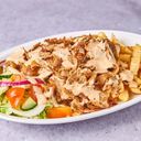 Kebab meat, French fries and Kebab Sauce