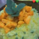 Revet injera stekt med løk, hvitløk og grønn pepper.