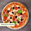 Pizza med ost og tomatsaus. Toppet med skinke og fersk champignon. En mild og populær favoritt.