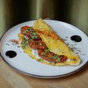 Midtøsten krydret lammekjøtt, granateplesirup, persille, koriander og ferske cherrytomater. Serveres med tzatziki og fries.