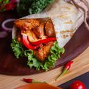 Serveres med valgfritt kjøtt, salat, mais,løk, tomat, jalapenos, pommes frites og ost.