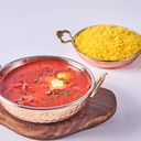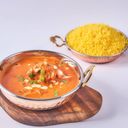 Tandoori kylling tilbered i fløte og smørsaus. Serveres med ris.
