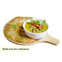 Flaky rotti servert med valgfrie karrier, rødlinser og kokos sambol.