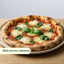 Enkel og klassisk italiensk pizza med mozzarella, basilikum, oregano og tomatsaus.