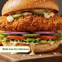 Burger with lettuce, onion, tomato, cucumber and burger sauce.