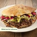Serveres med salat, agurk, mais, løk og kebabsaus.