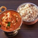 Kokt kylling tilberedt med fyldig kremet saus, cashewnøtter og smør. Serveres med ris.