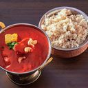 Tandoori stekt kylling tilberedt i en mild saus laget av tomater, nøtter, rosiner og krydder. Serveres med ris.