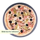 Pizza med skinke, løk, tomater, sjampinjong, paprika, pepperoni og oliven. Velg størrelse.