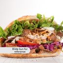 Kebab i pita med salat og dressing.