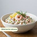 Salat med reker og dressing.