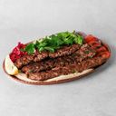 Lammekjøtt med løk, persille og chili. Serveres med salat, løk, rødkål, tomat, persille og sitron.