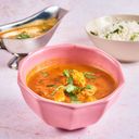 Saftige kyllingbiter tilberedt i sterk tomatsaus med fritert paprika, løk og indisk krydder.