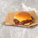 2 x 80gr smashkjøtt med cheddarsaus, bacon, jalapeño, sriracha majones, aioli og syltet rødløk.