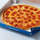 Pepperoni, rødløk, sort pepper, chiliflak, mozzarella & pizzasaus - toppet med cheddar.