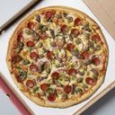 Pizza med avokado, rødløk, marinert aromasopp, oliven, cherrytomat og grønnkålmiks. Osten er byttet ut med en smaksrik vegansk aioli. Toppet med nykvernet pepper og limezest. Velg størrelse, glutenfri pizza kommer kun i liten størrelse.